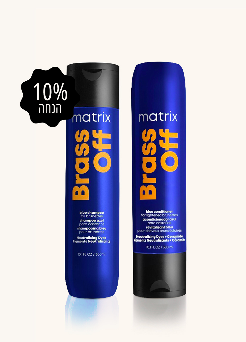 מרכך כחול Matrix Brass Off, מועשר בפיגמנטים כחול־סגול ובקרמיד, מסייע לנטרול תתי־גוונים כתומים וחמים כבר בשטיפה אחת בלבד! מעניק פי 2 יותר לחות ושיער מבריק וחזק יותר.