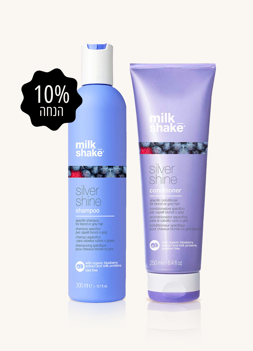 milk_shake® Silver Shine Shampoo משלב את היתרונות המשקמים של חלבוני חלב, אוכמניות עשירות בוויטמינים ופיגמנט סגול, להבהרה ולנטרול גוונים צהובים לא רצויים בשיער בלונדיני או אפור.
